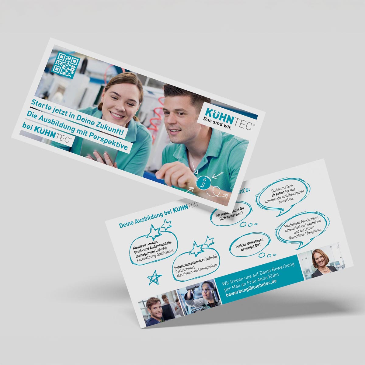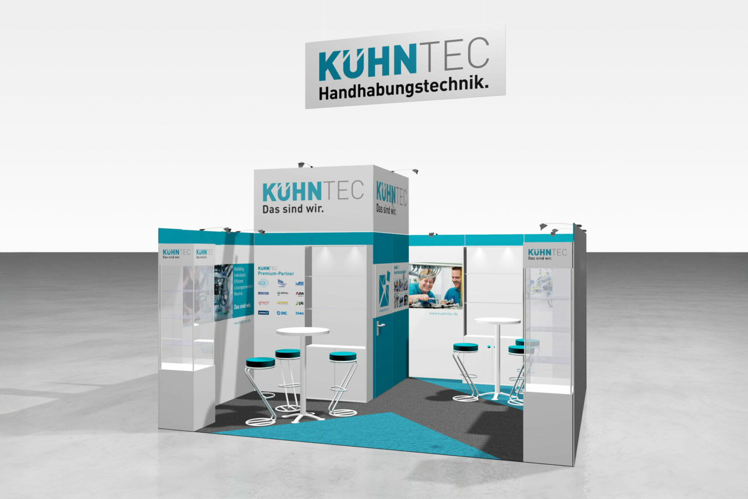 Auch auf zahlreichen Fachmessen zeigt sich die Marke konsistent und klar. Vom Messestand bis zu begleitenden Kommunikationsmedien spiegelt sich das neue Corporate Design wider: prägnant, flexibel und unverkennbar KÜHNTEC.