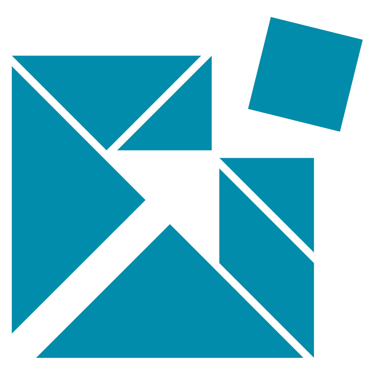 Zentrales Gestaltungselement des Corporate Designs sind Tangram-Formen, die sich zu den