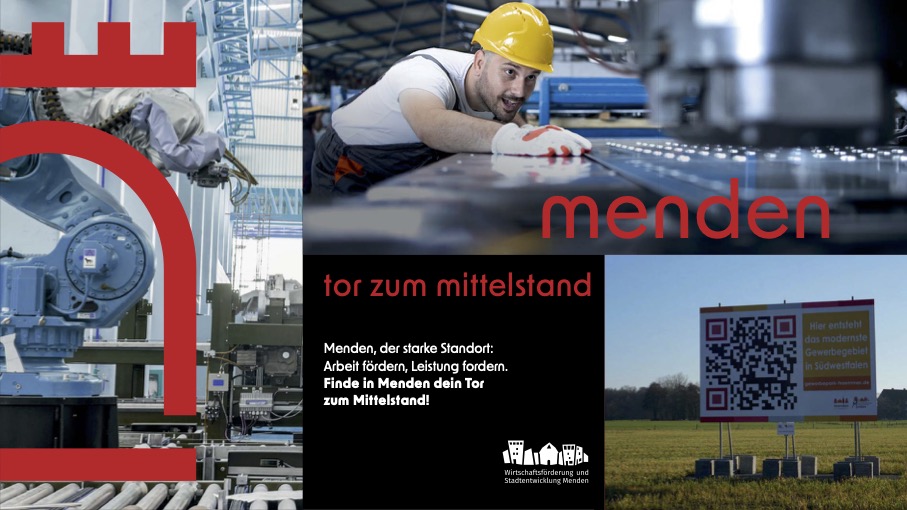 Die neue Markenidentität steht für ein farbenfrohes, positives und nahbares Menden. Ihre Bildmarke leitet sich aus dem historischen Stadttor ab, dem prägenden Symbol der Stadt. Es öffnet sich in vielfältige Richtungen: als „Tor zum Sauerland“, „Tor zum Vergnügen“ oder „Tor zur Kultur“ und macht so den Charakter der Stadt auf sympathische Weise sichtbar.
